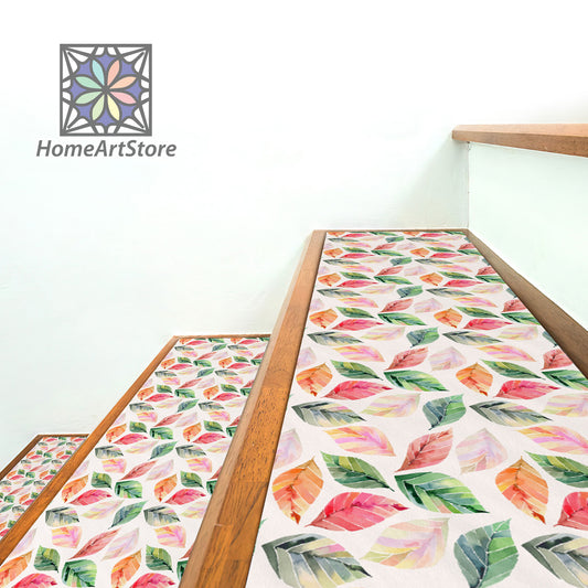 Colorful Leaves Pattern Stair Rugs, Leaf Step Mats, Modern Stair Tread Carpet, Leaf Theme Stair Decor