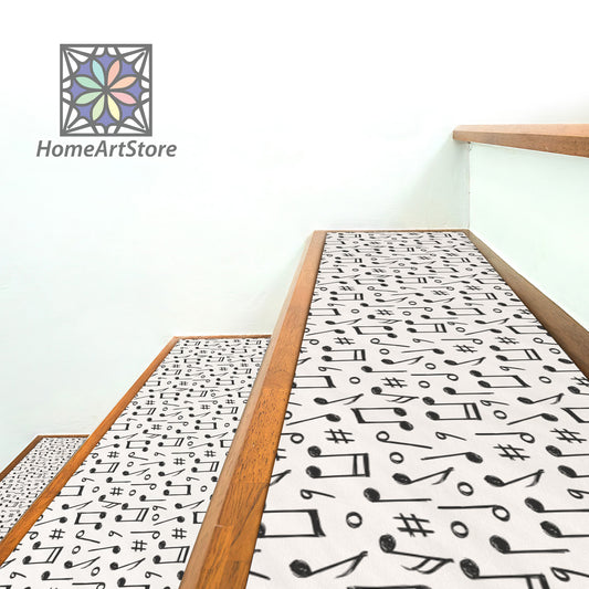 Music Notes Pattern Stair Step Rugs, Boho Style Step Mats, Music Art Stair Tread Carpet, Black and White Stair Mat