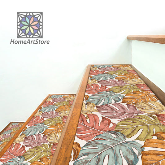 Monstera Leaves Pattern Stair Rugs, Botanic Stair Mats, Tropical Home Decor, Hawaiian Step Carpet