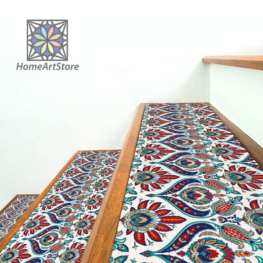 Turkish Style Stair Step Rugs, Ottoman Motif Pattern Stair Mats, Authentic Step Carpet, Boho Decor