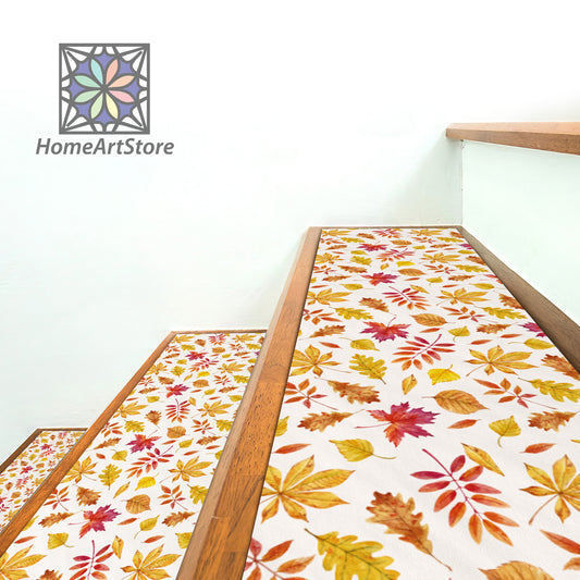 Autumn Leaves Pattern Stair Rugs, Leaf Stair Treads Carpet, Boho Style Step Mats, Nonslip Backing Stair Mat, Botanical Decor