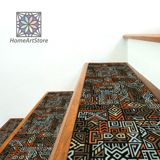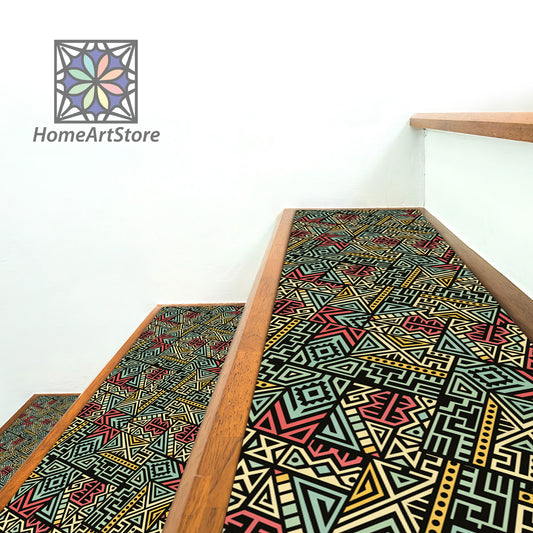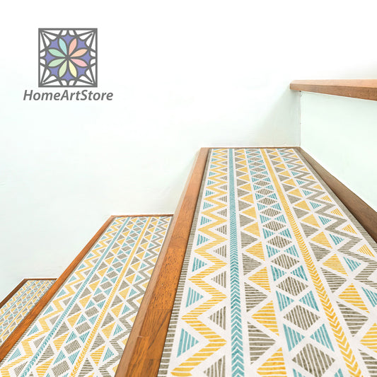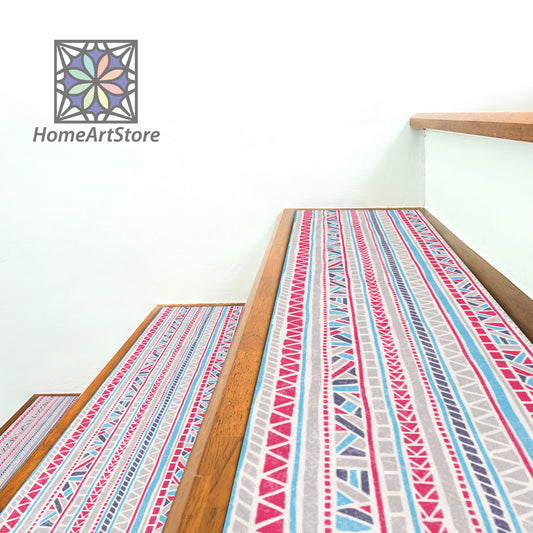Ethnic Stair Rugs, Boho Style Stair Carpet, Tribal Motif Stair Mats, Geometric Pattern Stair Mat