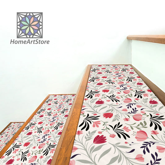 Floral Stair Step Rugs, Flower Pattern Stair Mat, Boho Style Decor, Machine Washable Step Rug