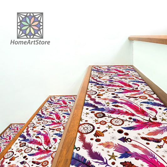 Ethnic Feather Pattern Stair Rugs, Stylish Stair Mats, Modern Stair Tread Carpet, Modern Step Rug