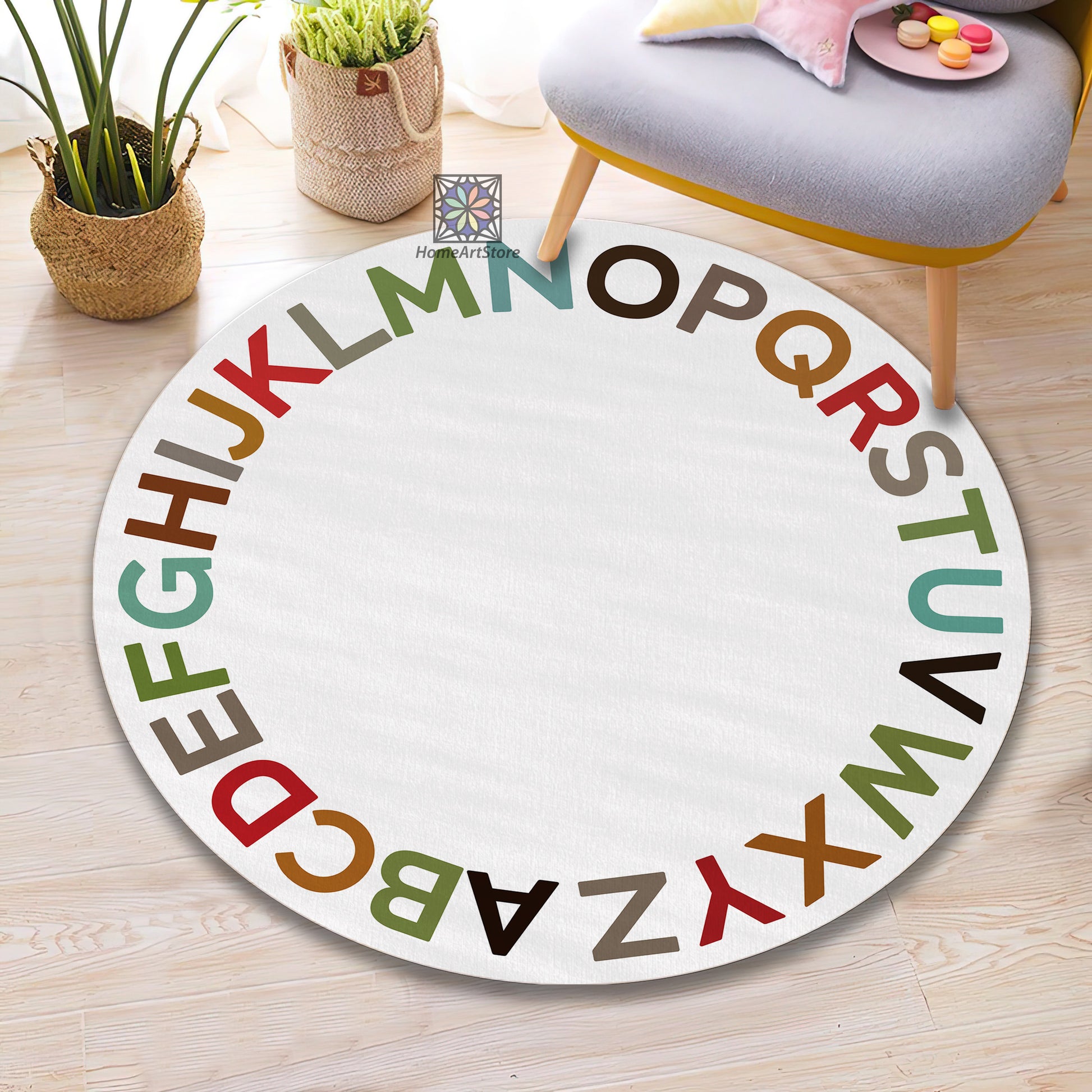ABC Alphabet Rug, Educational Nursery Decor, Kids Room Round Carpet, Play Mat, Gift for Kids