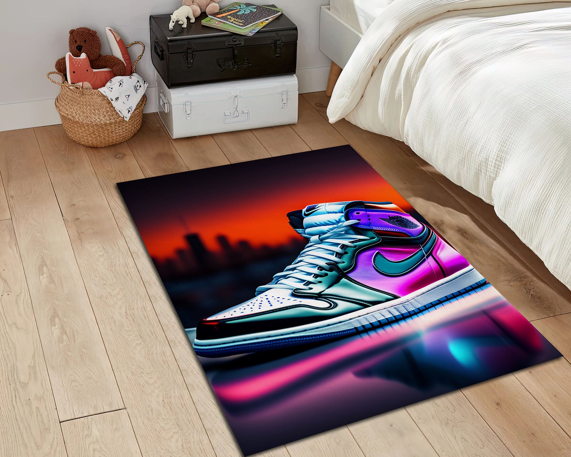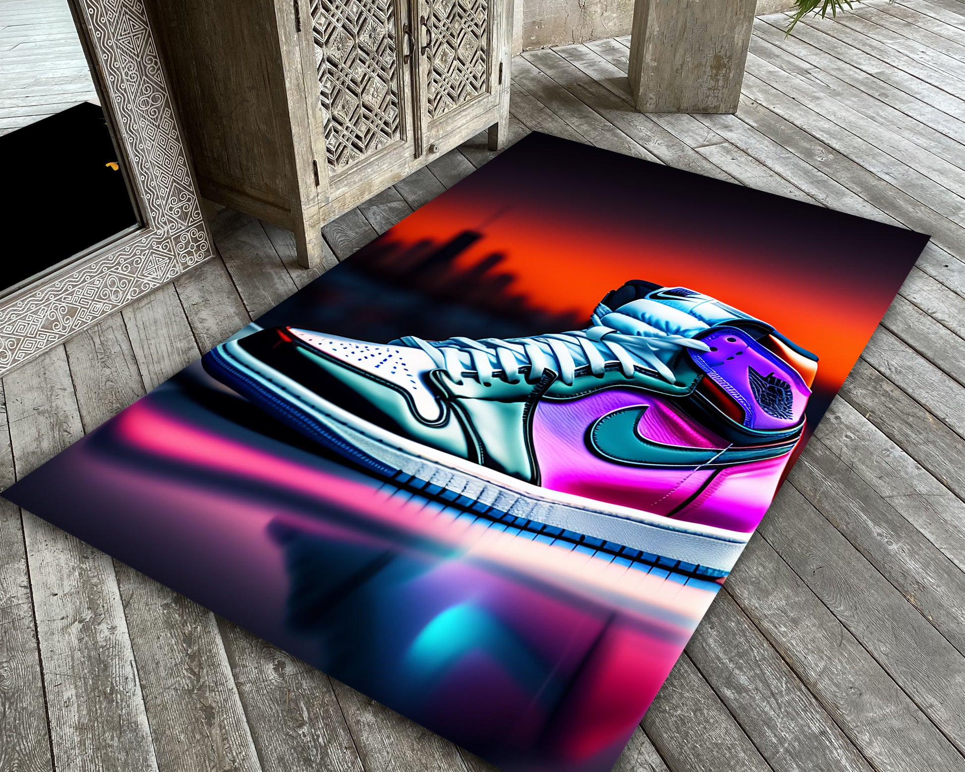Air Jordan 1 Rug, the ultimate addition for sneaker enthusiasts and Jordan fans alike. This sneaker carpet features a stunning 3D Jordan mat design that brings your favorite kicks to life in vibrant detail.