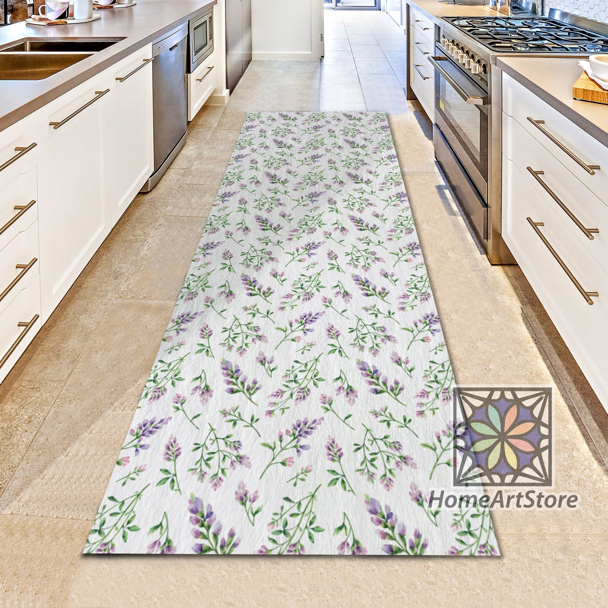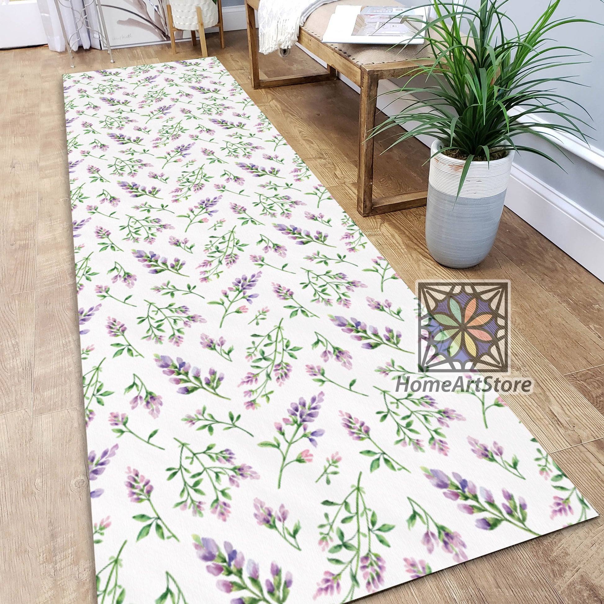 Alfalfa Flowers Runner Rug, Purple and White Kitchen Runner Rug, Corridor Runner Rug, Floral Carpet