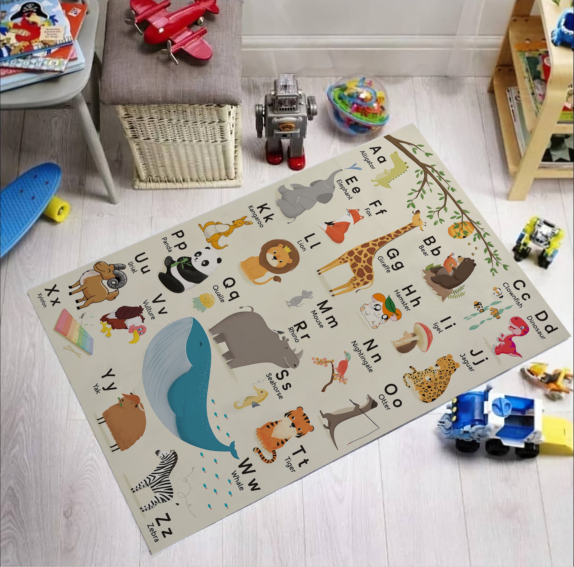 Animal Alphabet Rug, ABC Carpet, Play Room Mat, Educational Nursery Rug, School Rug