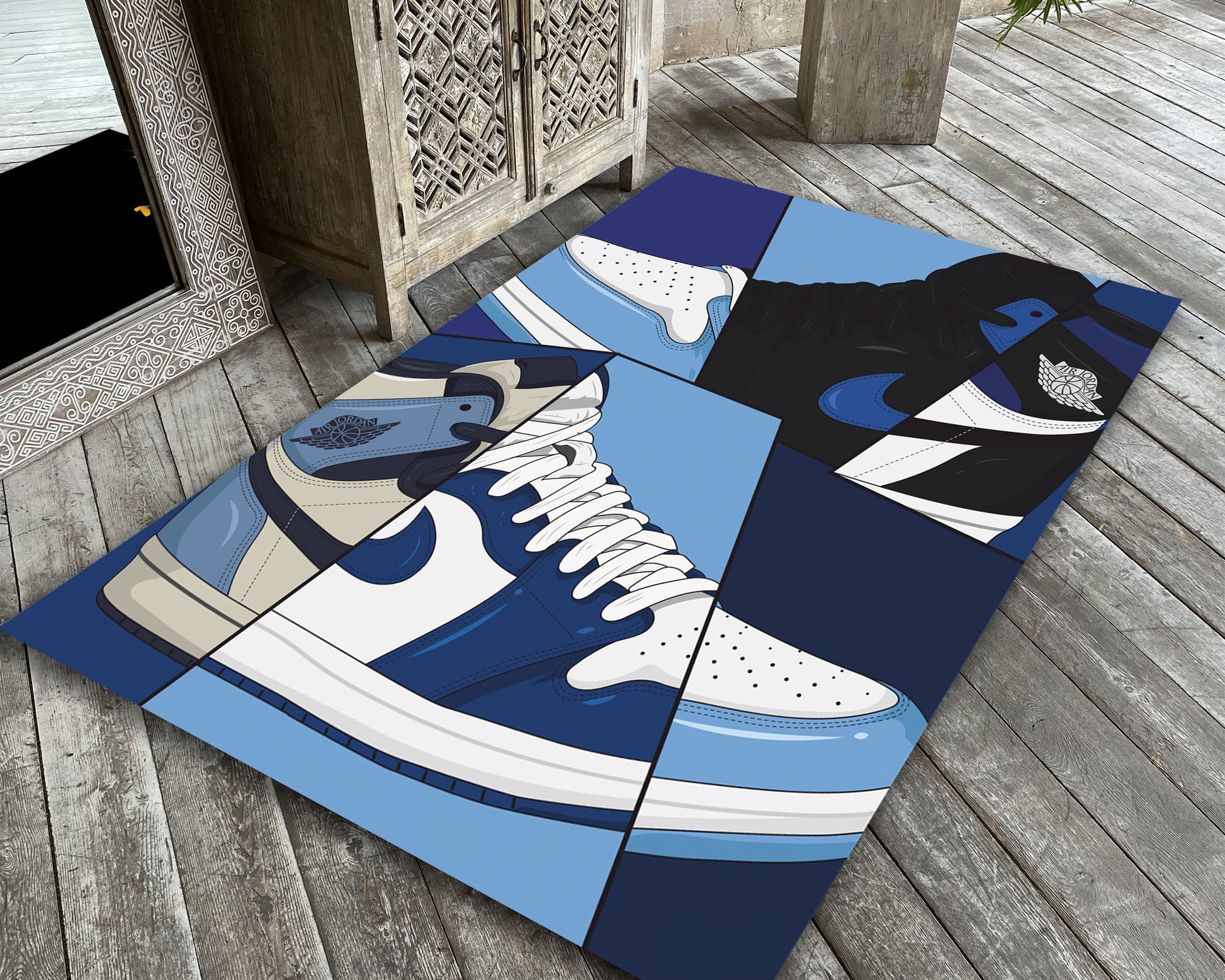 Blue Jordan rug, the perfect addition to any sneakerhead's collection. This high-quality Nike carpet combines the iconic Jordan brand with a vibrant blue design, creating a striking statement piece for your home.