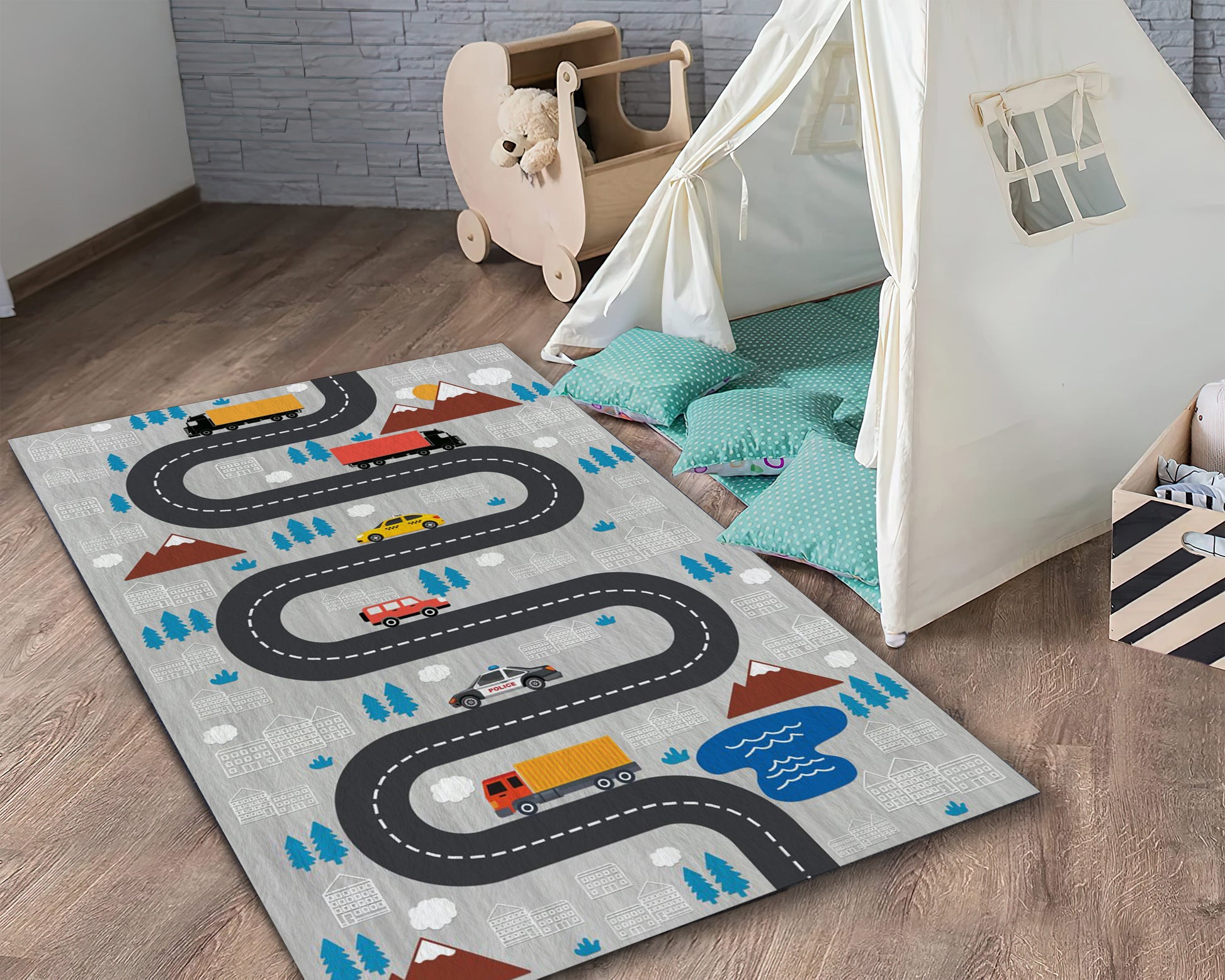 Car Pattern Rug, Kids Room Carpet, City Map Decor, Nursery Rug, Baby Gift