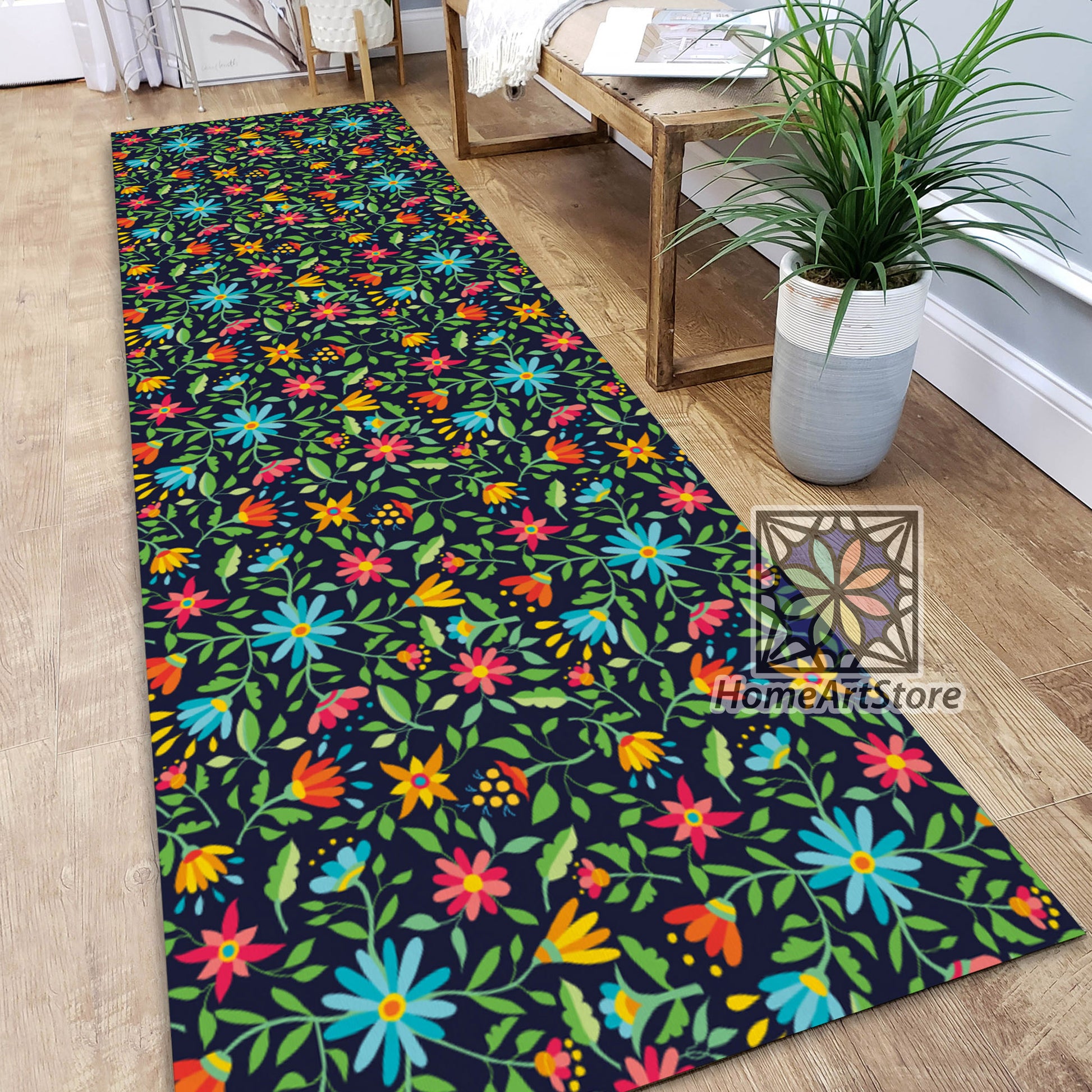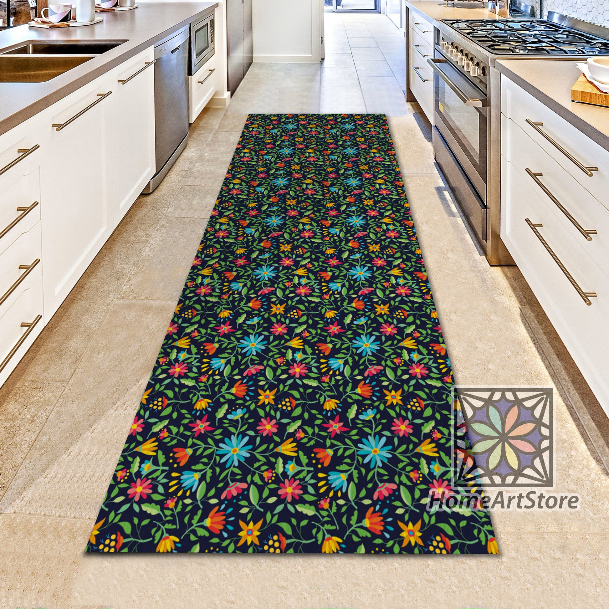 Colorful Flower Runner Rug, Boho Runner Mat, Kitchen Runner Rug, Entrance Carpet, Bohemian Decor