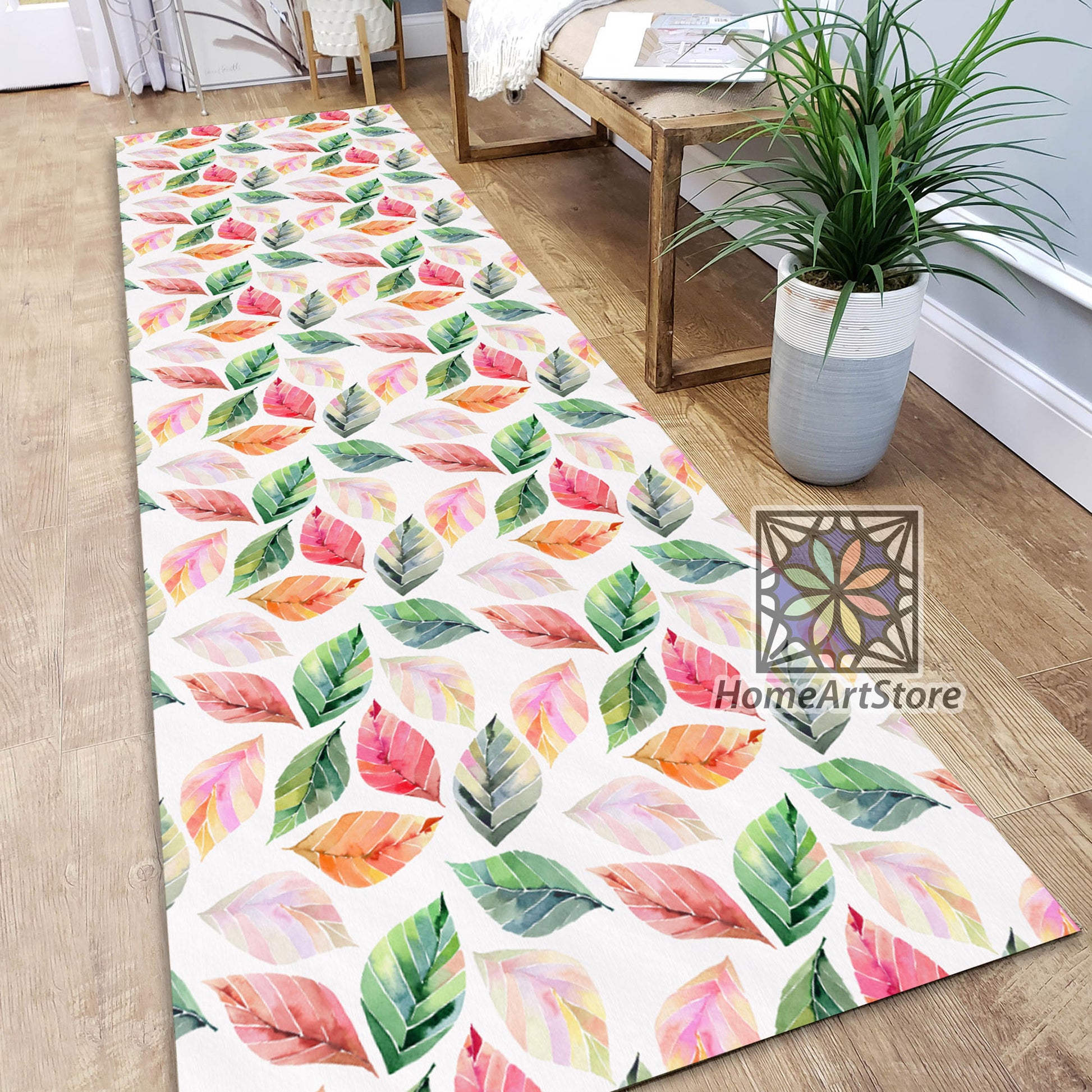 Colorful Leaves Pattern Rug, Kitchen Runner Rug, Boho Decor, Leaf Runner Carpet, Hallway Runner Mat