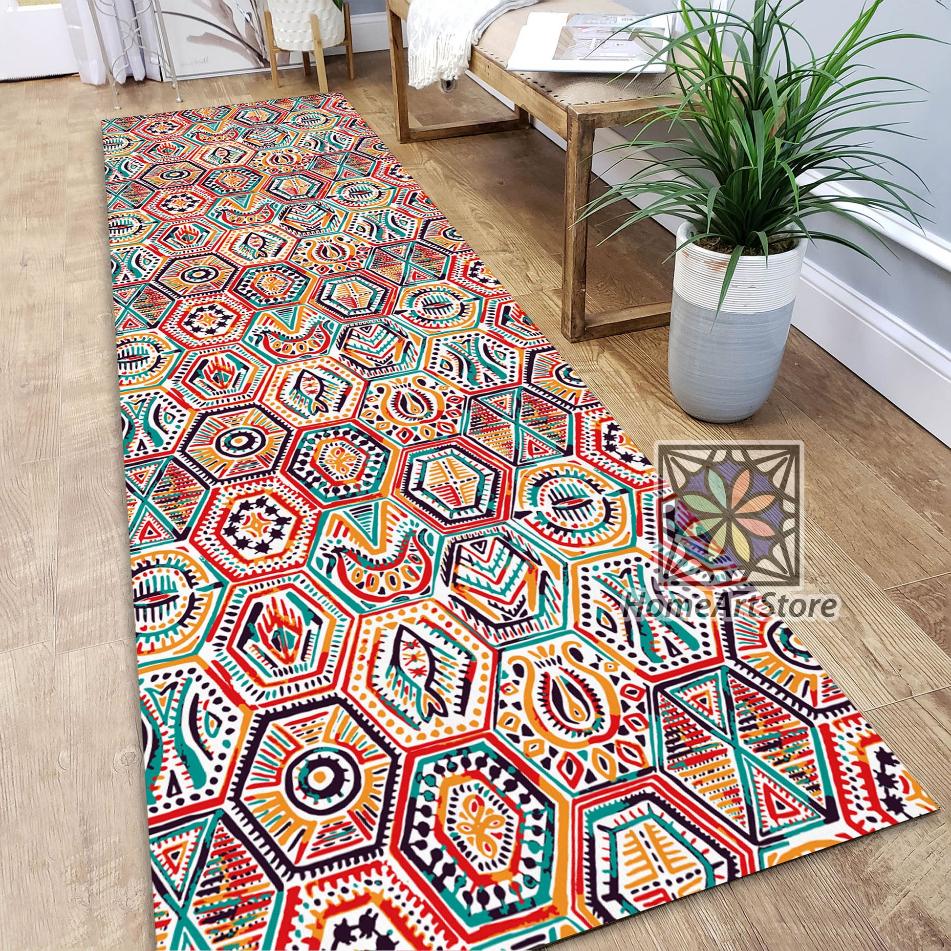 Colorful Patchwork Rug, Ethnic Motif Runner Rug, Kitchen Runner Mat, Bohemian Decor, Boho Rug
