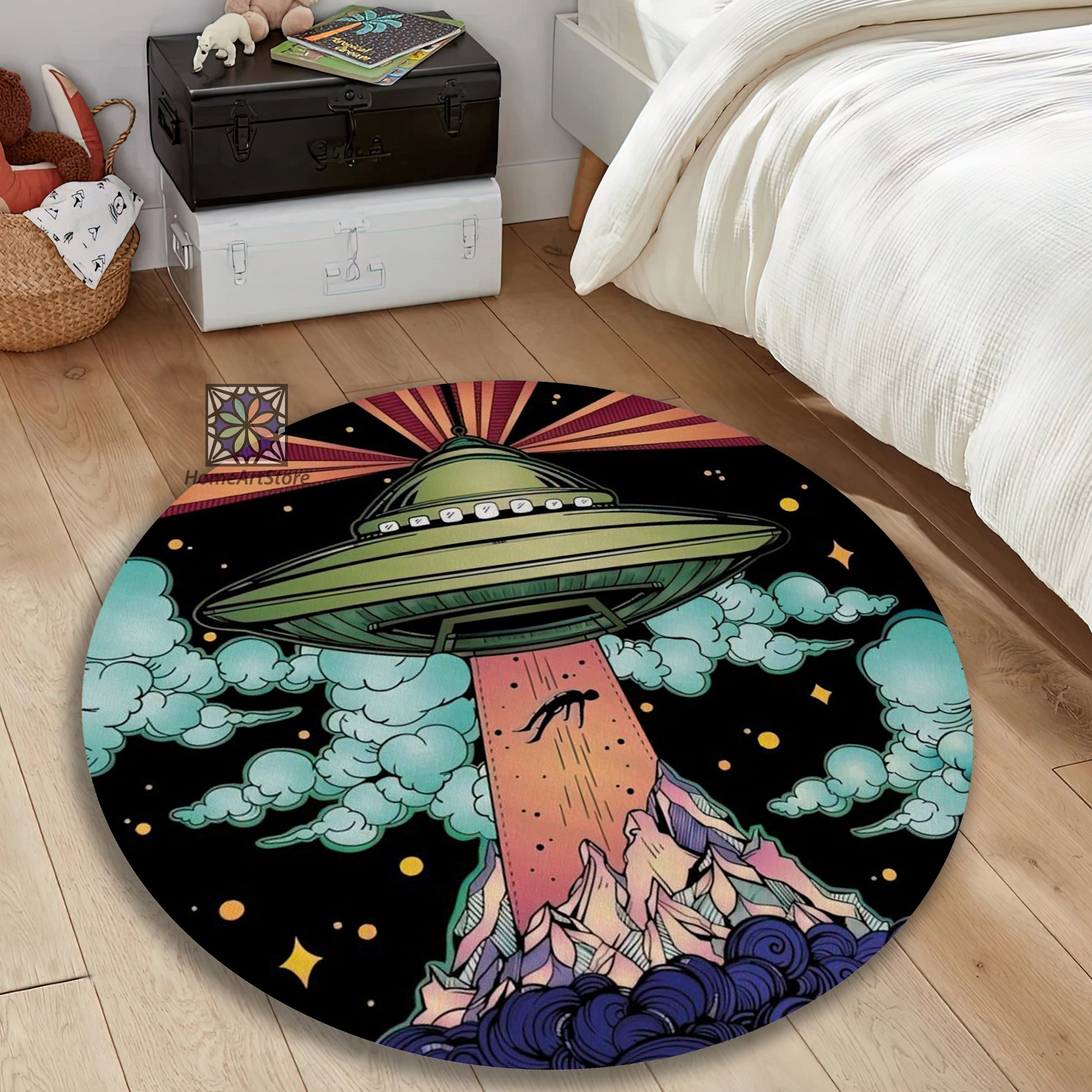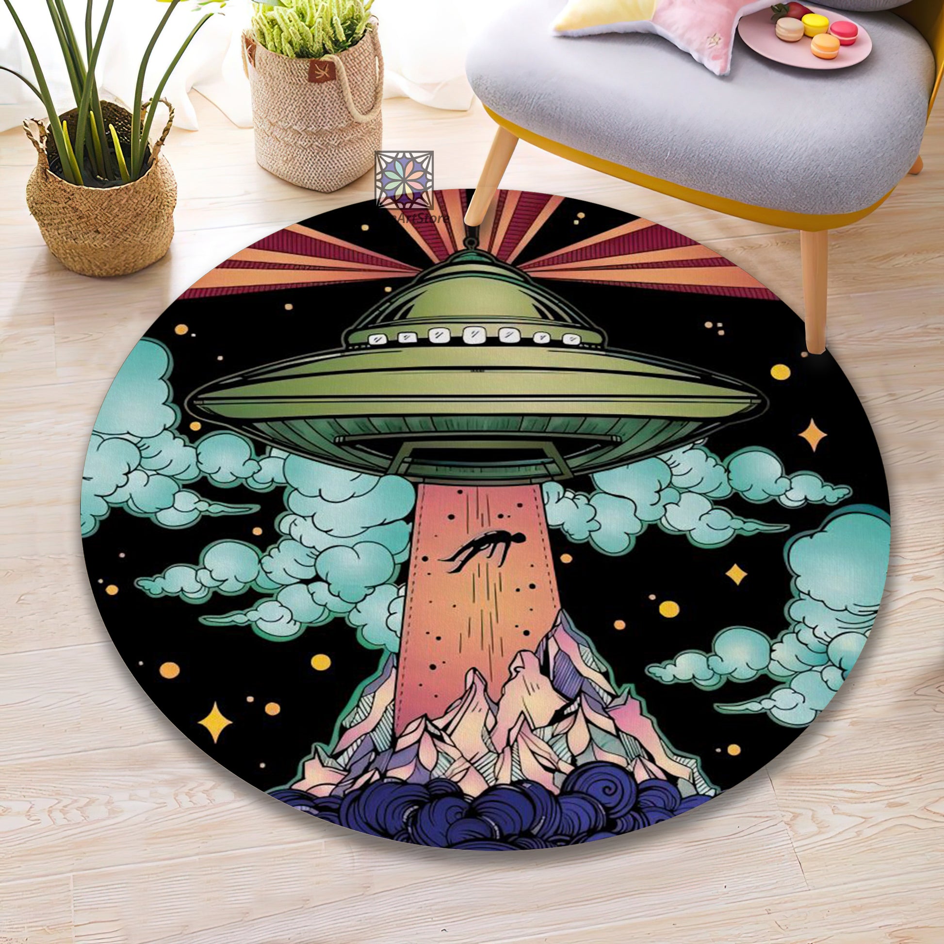 Colorful Space Rug, UFO Carpet, Children Room Carpet, Spacecraft Decor, Galaxy Mat