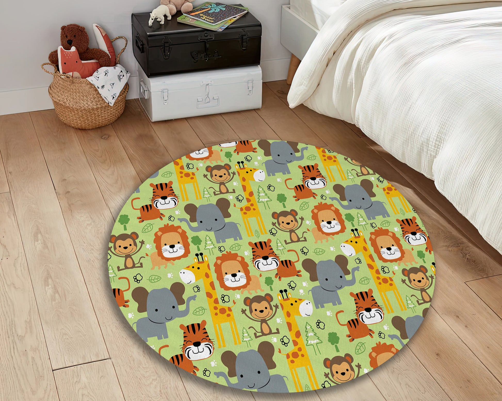 Cute Animal Pattern Rug, Colorful Nursery Mat, Kids Room Carpet, Baby Shower Decor, Baby Gift