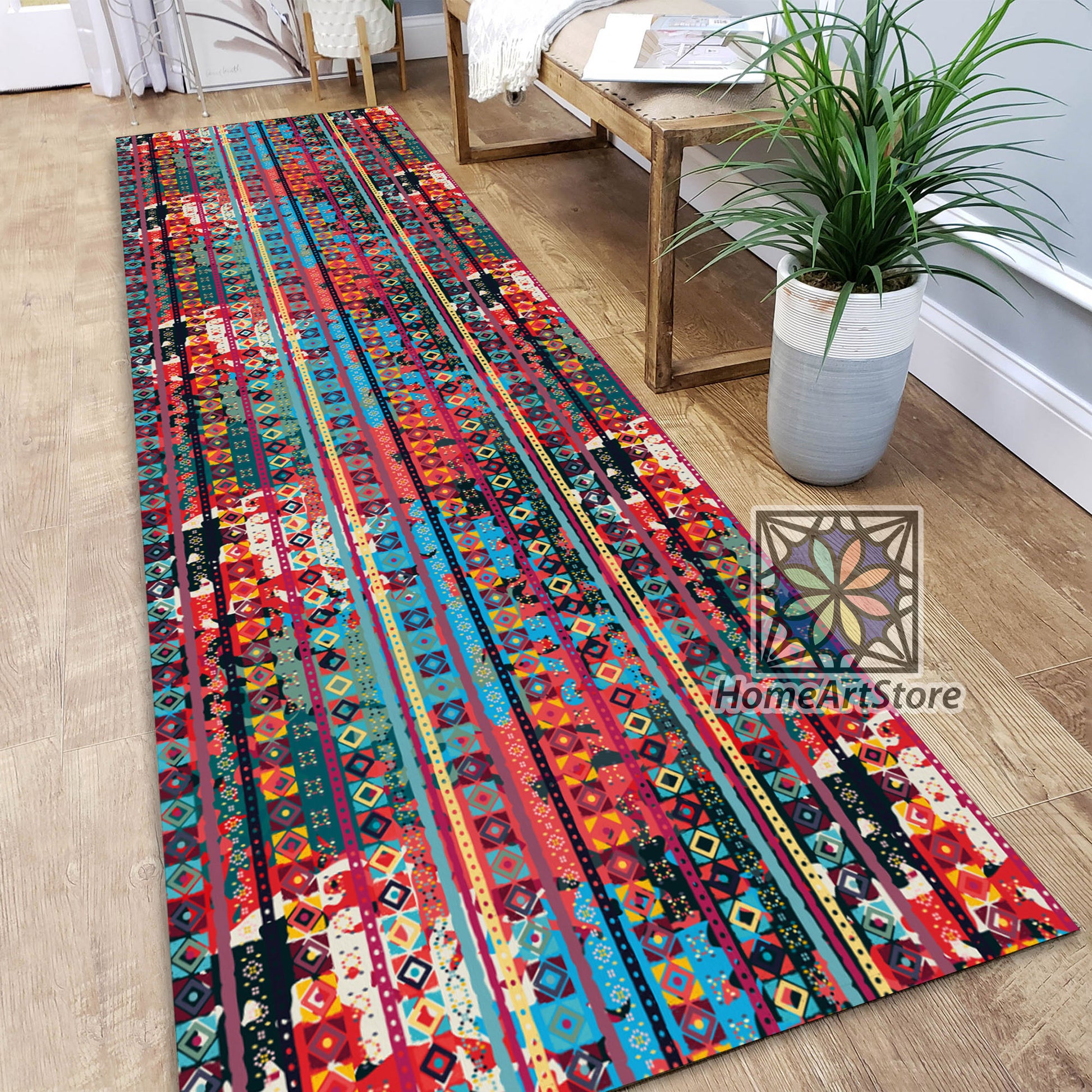 Ethnic Boho Runner Rug, Colorful Kitchen Runner Carpet, Geometric Hallway Runner Rug, Tribal Home Decor