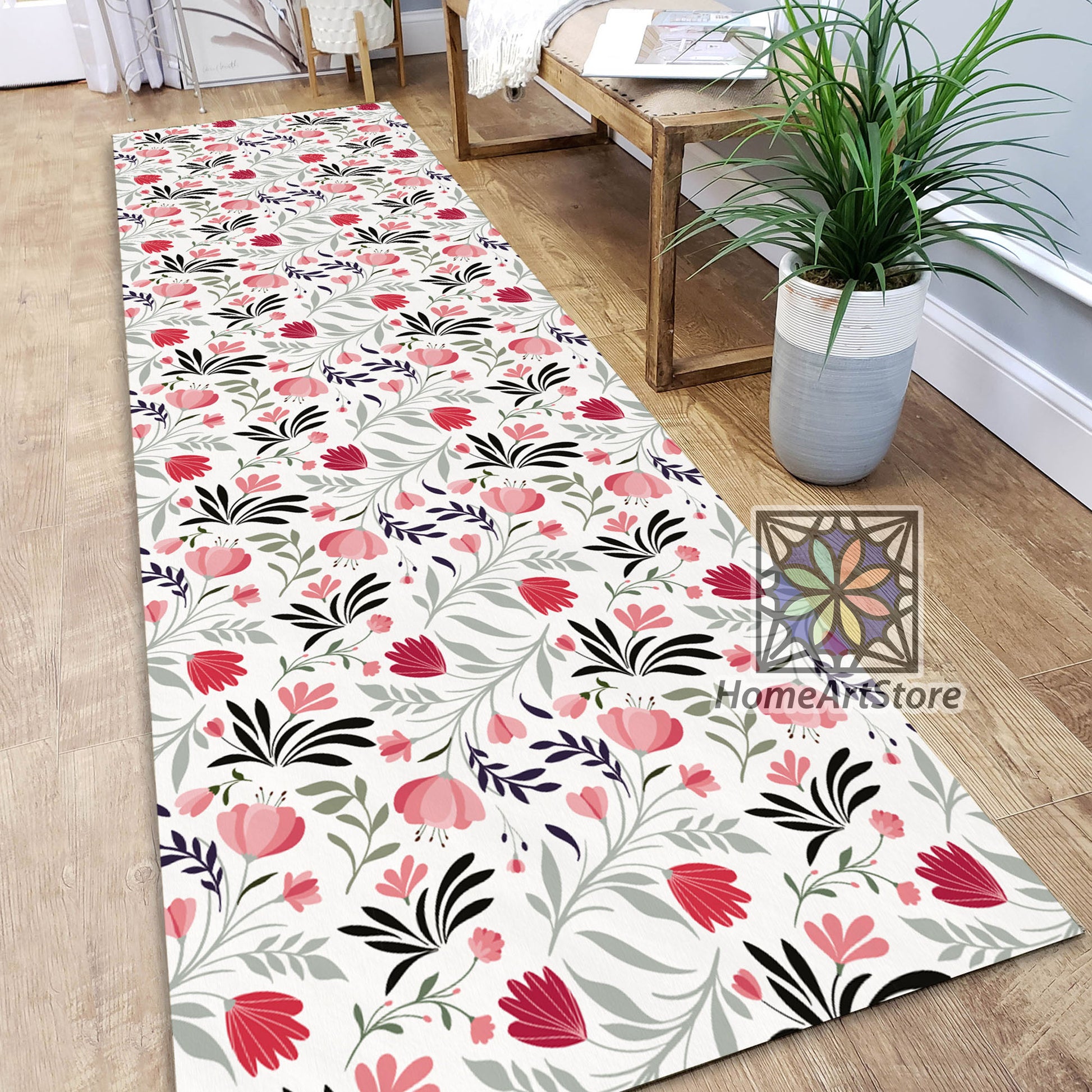 Flowers And Plants Themed Kitchen Runner Rug, Modern Hallway Carpet, Boho Rug, Floral Runner Mat, Boho Decor