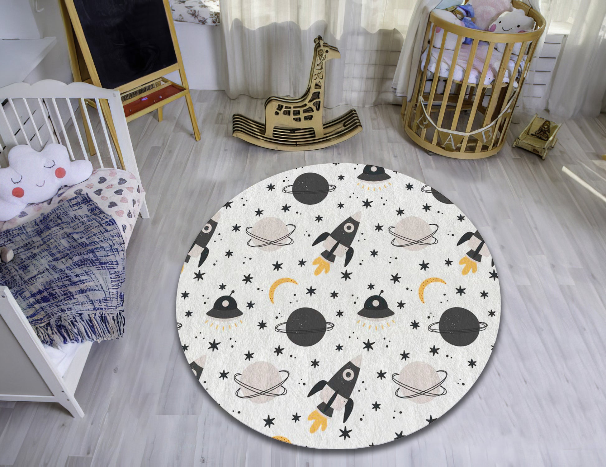 Kids Space Pattern Rug, Baby Room Carpet, Galaxy Round Mat, Nursey Play Rug, Moon, Baby Gift