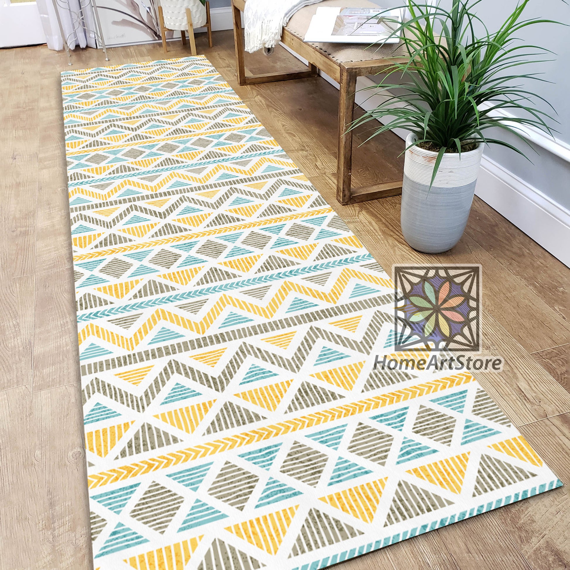 Kitchen Ethnic Runner Rug, Tribal Motif Carpet, Ethnic Runner Rug, Hallway Runner Mat, Kitchen Decor