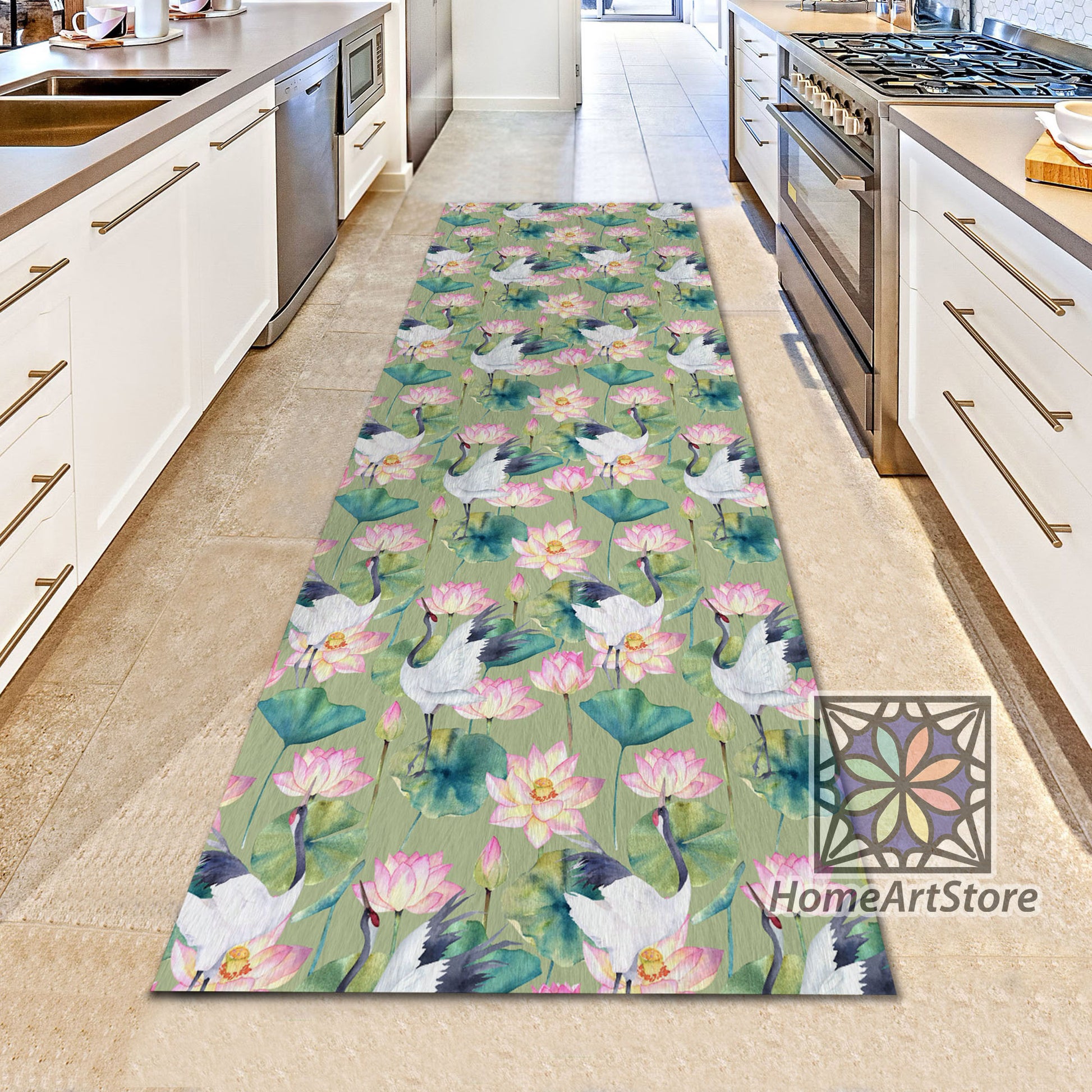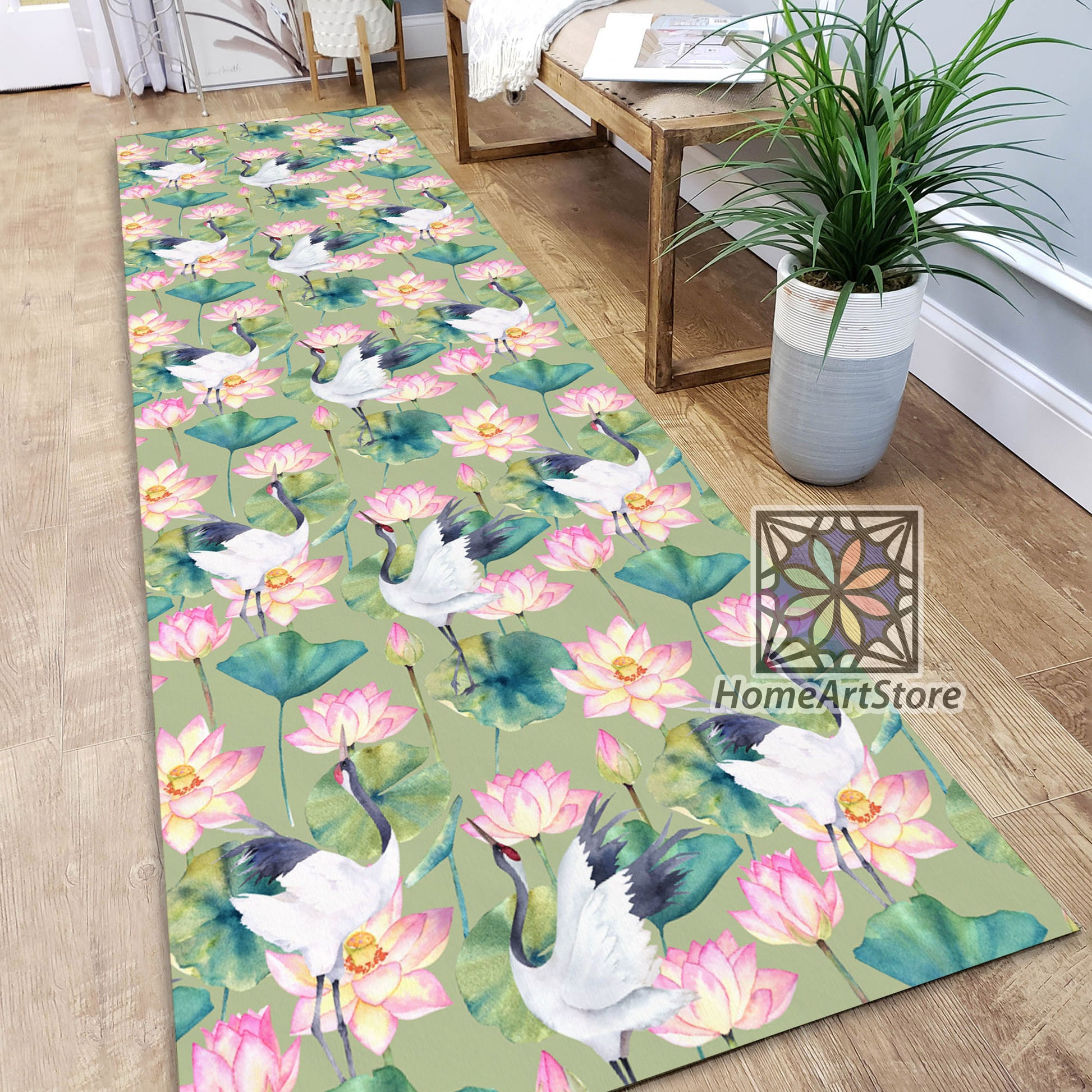 Lotus Flower Runner Rug, Bird Themed Runner Mat, Corridor Runner Carpet, Hallway Home Decor