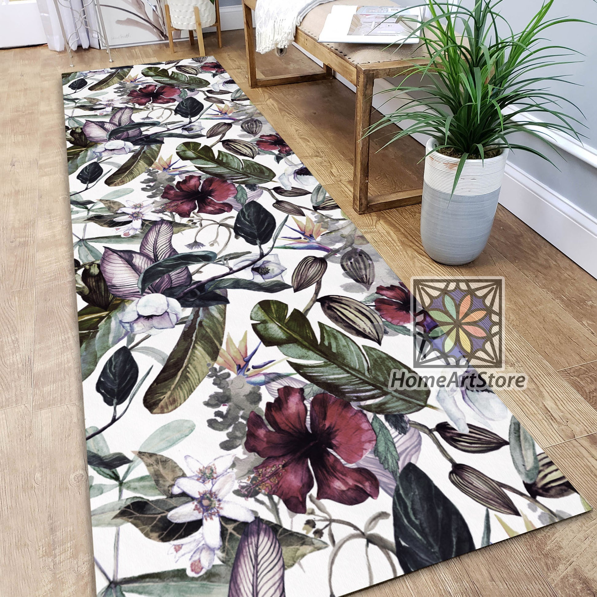Magnolia Themed Runner Rug, Tropical Themed Kitchen Carpet, Boho Home Decor, Hawaii Hallway Runner Rug