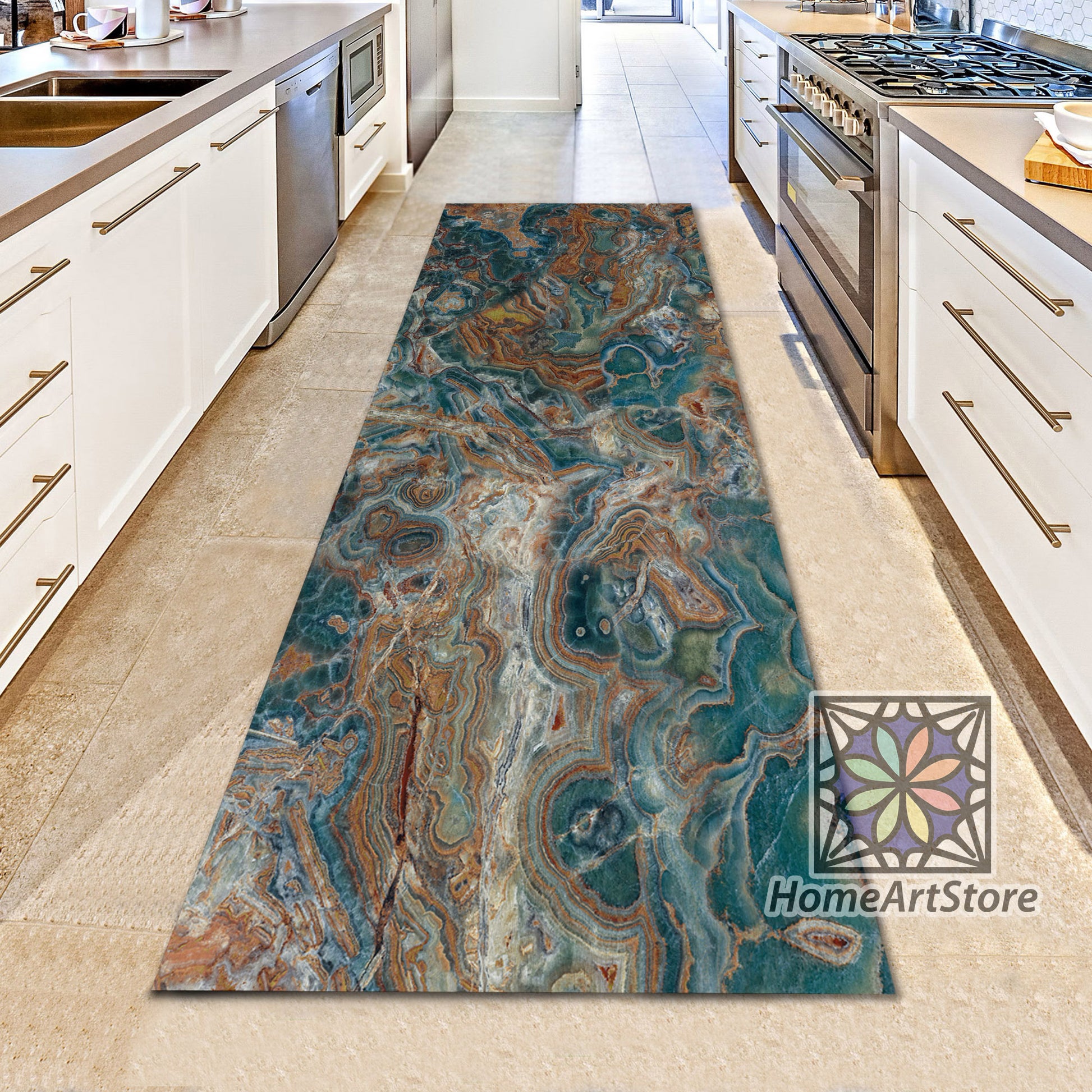 Marble Stone Pattern Runner Rug, Ceramic Tile Rug, Decorative Kitchen Carpet, Marble Decor, Mosaic Mat
