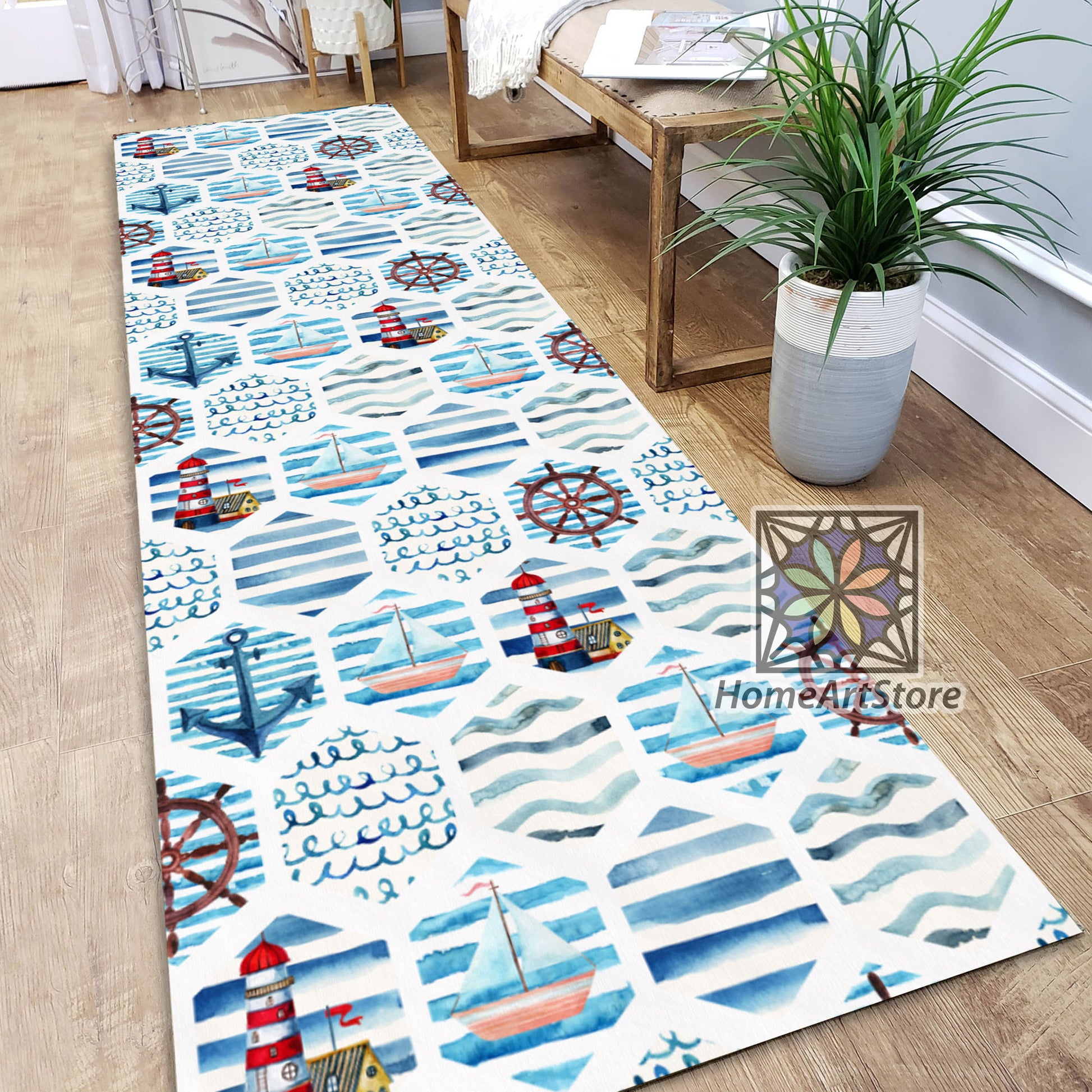 Marine Style Coastal Runner Rug, Sea Runner Mat, Summer House Decor, Ocean Carpet, Tropical Mat, Hawaiian Gift