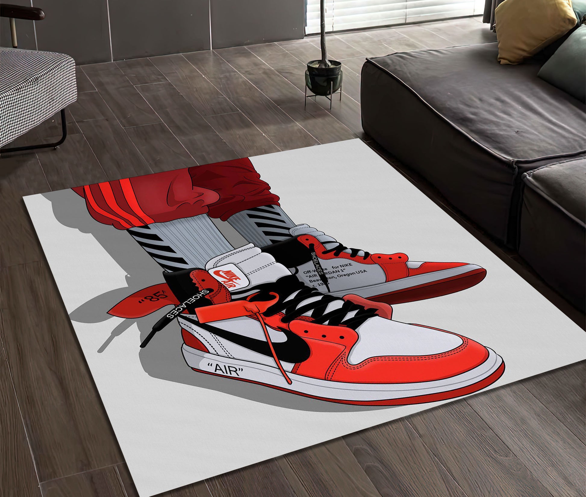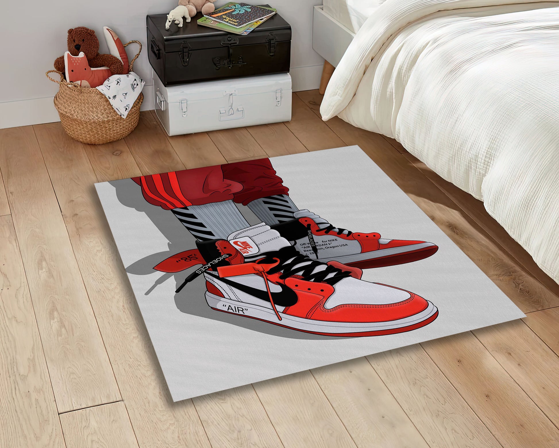 Off White Rug, Air Jodan Carpet, Red Sneaker Mat, Street Fashion Decor, Teenage Room Rug, Jordan Gift