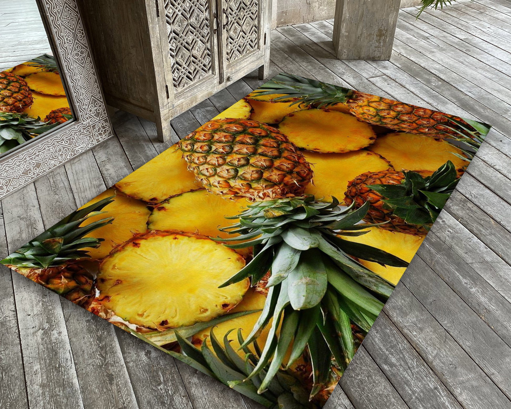 Pineapple Rug, Yellow Fruit Carpet, Kitchen Mat, Dining Room Decor, Tropical Rug