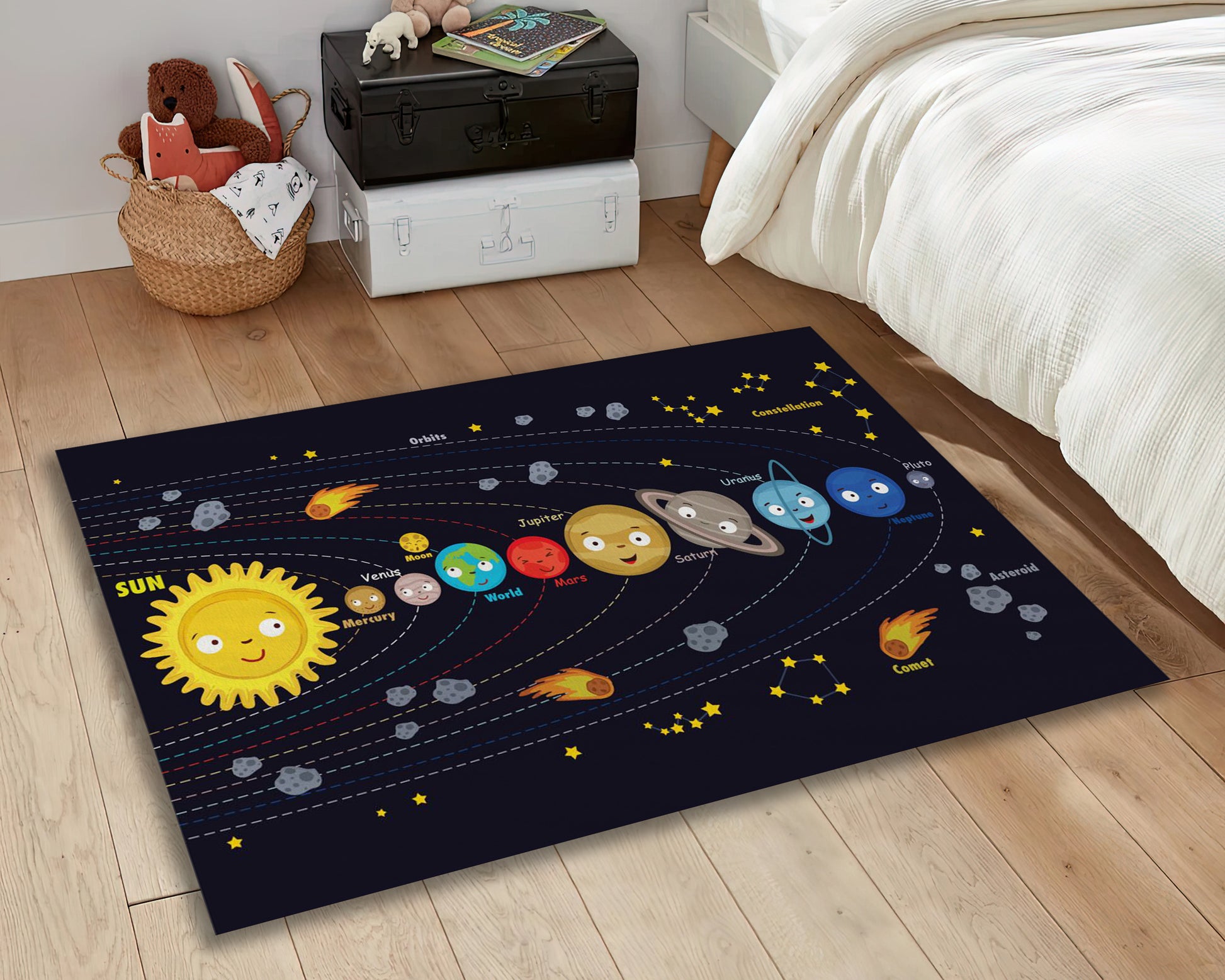 Planets Themed Rug, Galaxy Carpet, Orbits Decor, Nursery Play Mat, Solar System Rug, Kids Room Carpet