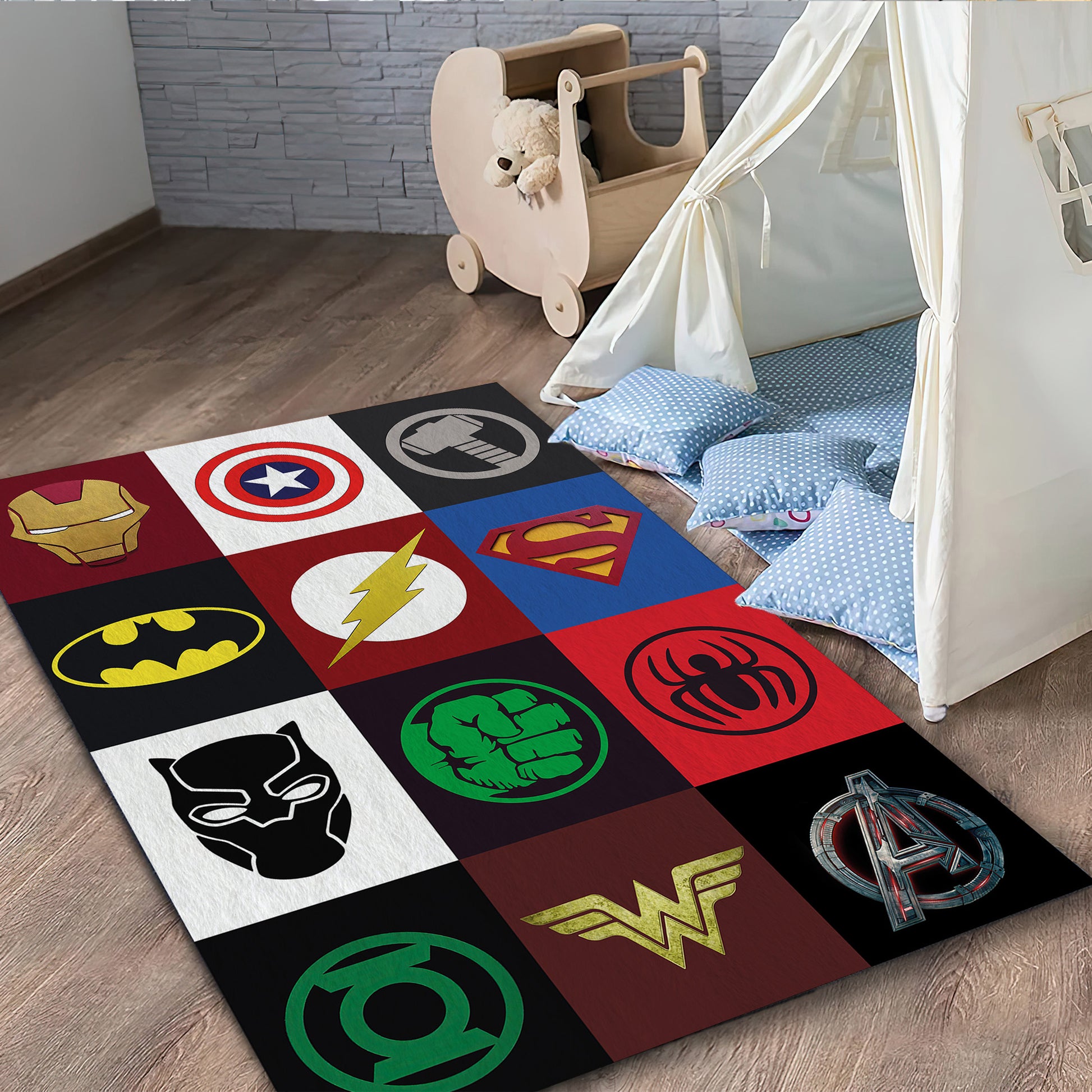 Superhero logo rug, Marvel Carpet, Children's Room Decor, Avengers Mat