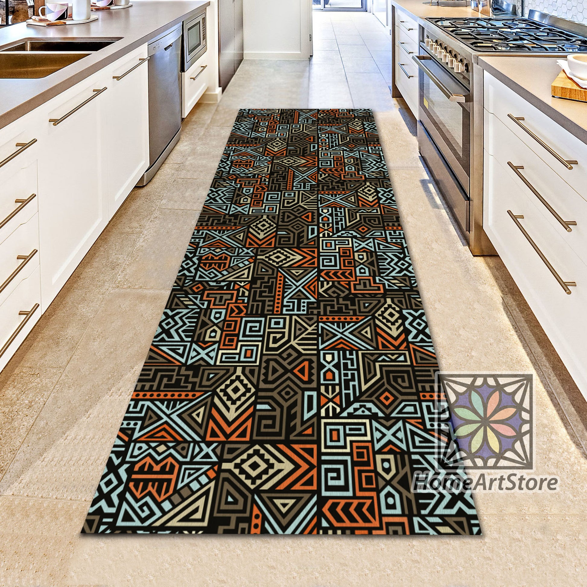 Tribal Runner Rug, Aztec Runner Mat, Geometric Kitchen Runner Carpet, Boho Home Decor, African Themed Runner Rug