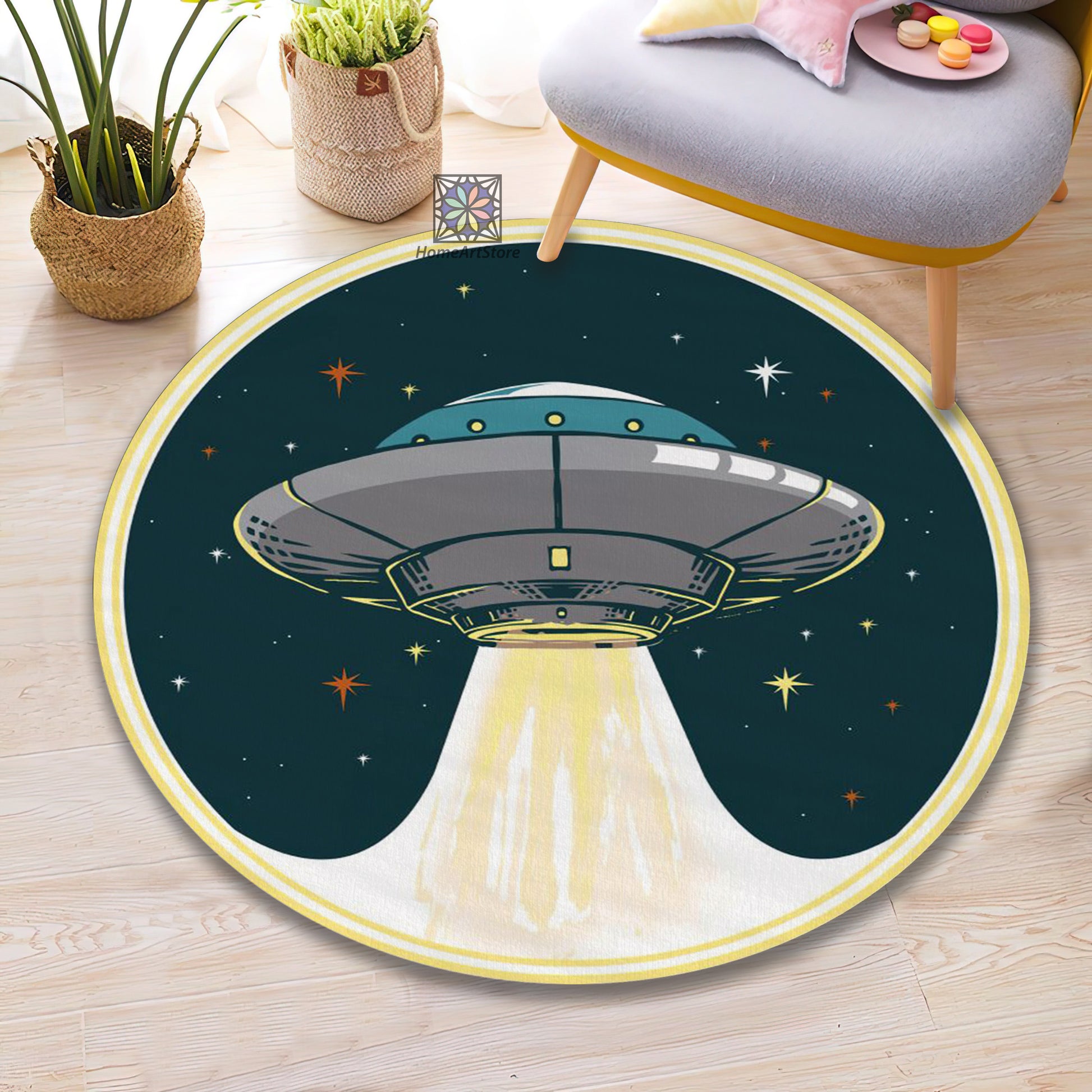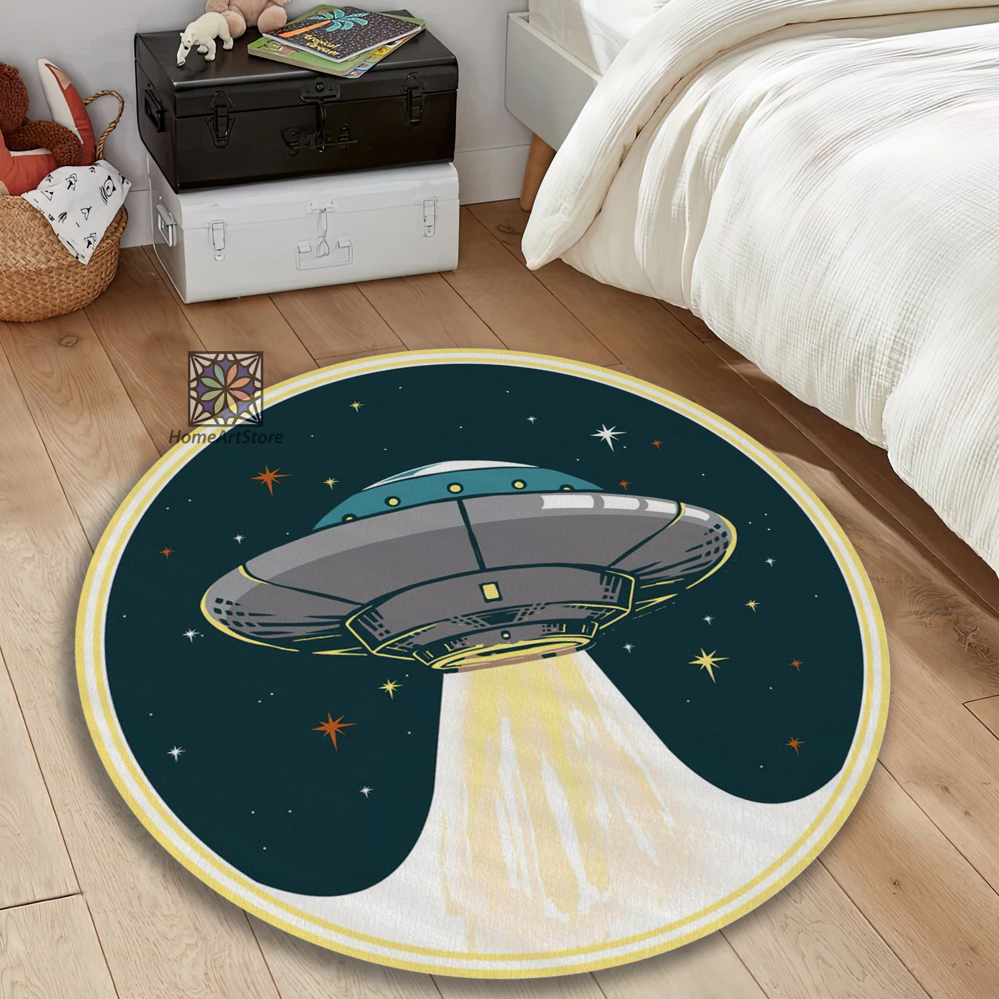 UFO Themed Rug, Space Room Carpet, Spacecraft Mat, Kids Room Rug, Nursery Play Mat