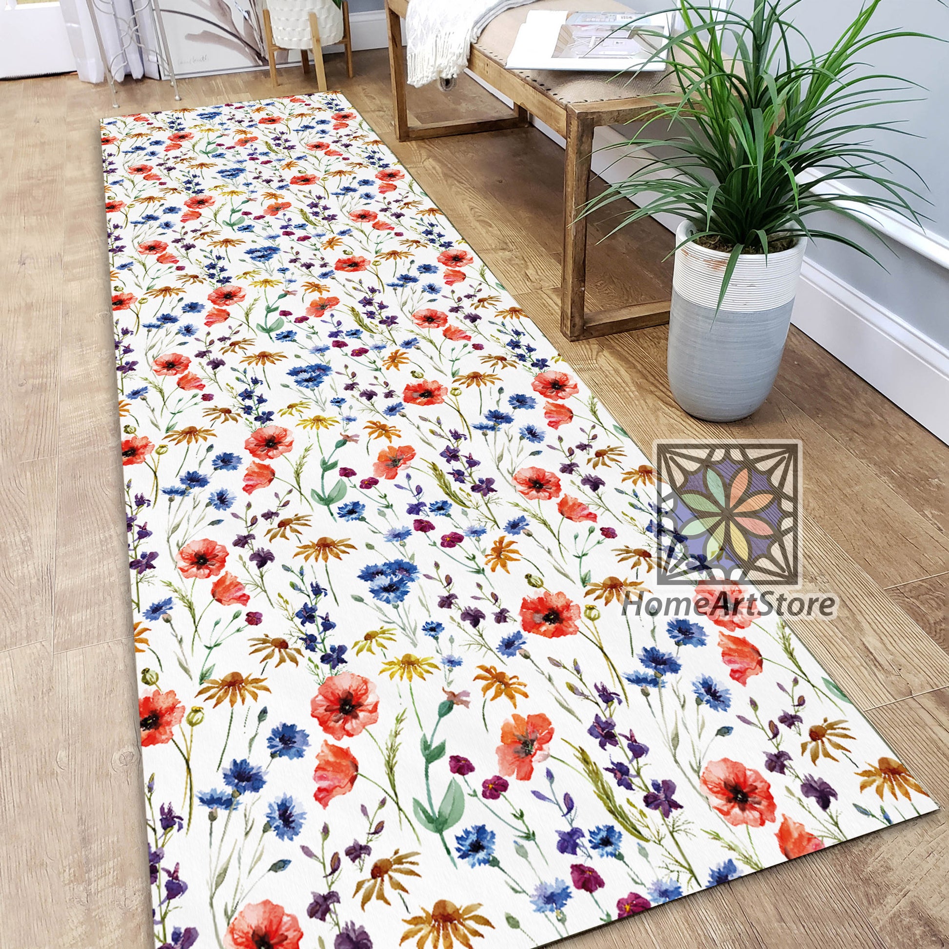 Wildflowers Pattern Runner Rug, Kitchen Runner Mat, Flowers Carpet, Floral Runner Rug, Boho Decor