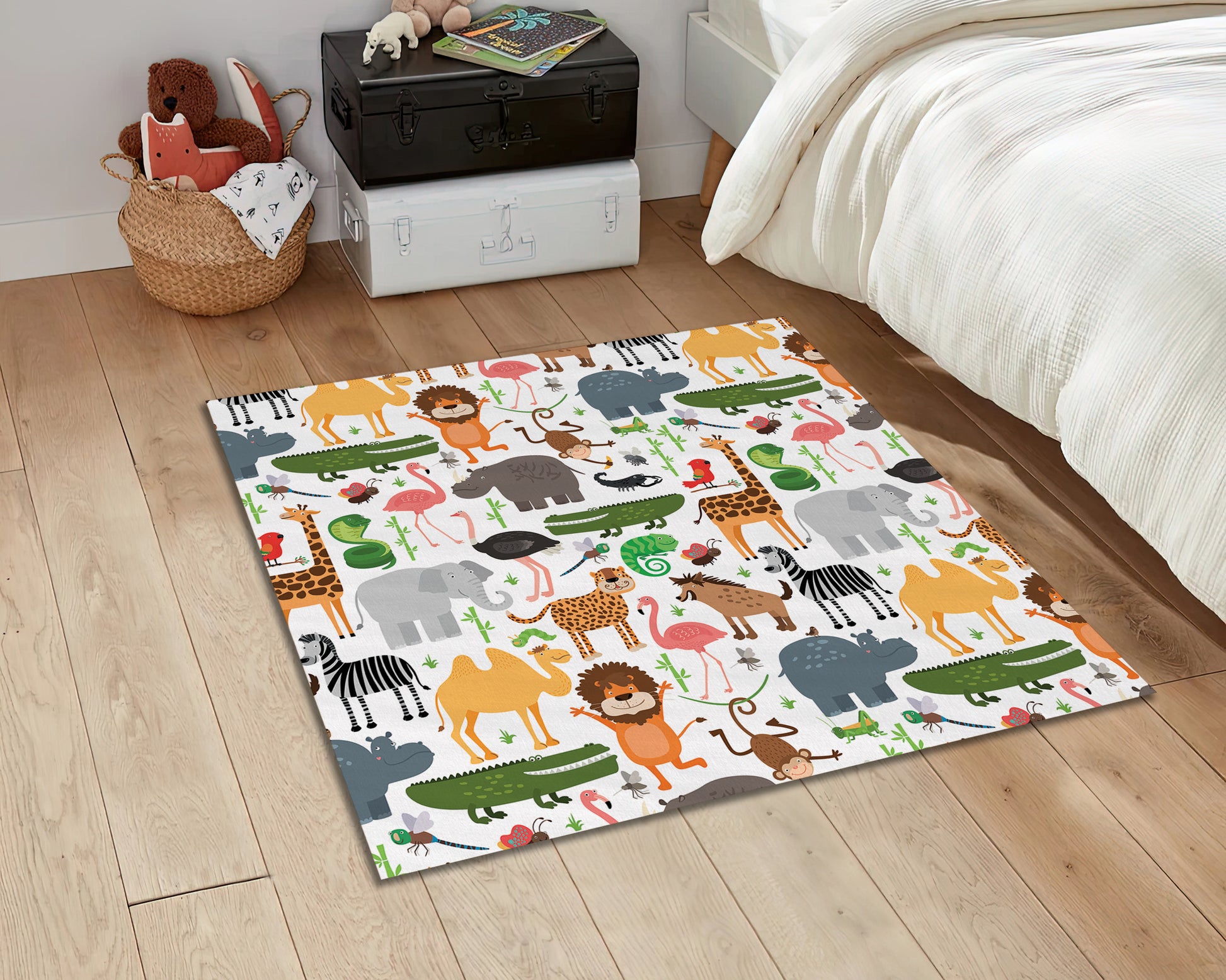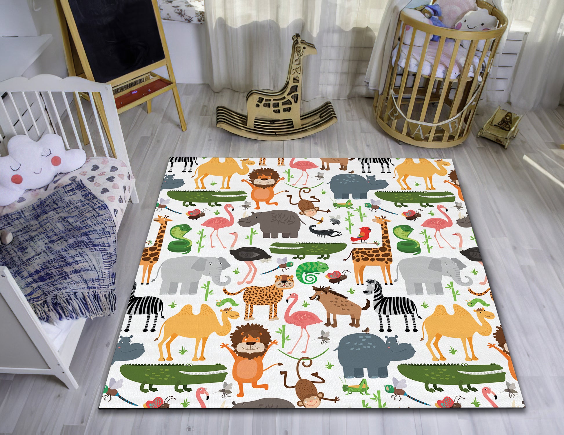 Zoo Pattern Rug, Baby Room Carpet, Nursery Play Mat, Colorful Animal Decor, Safari Rug